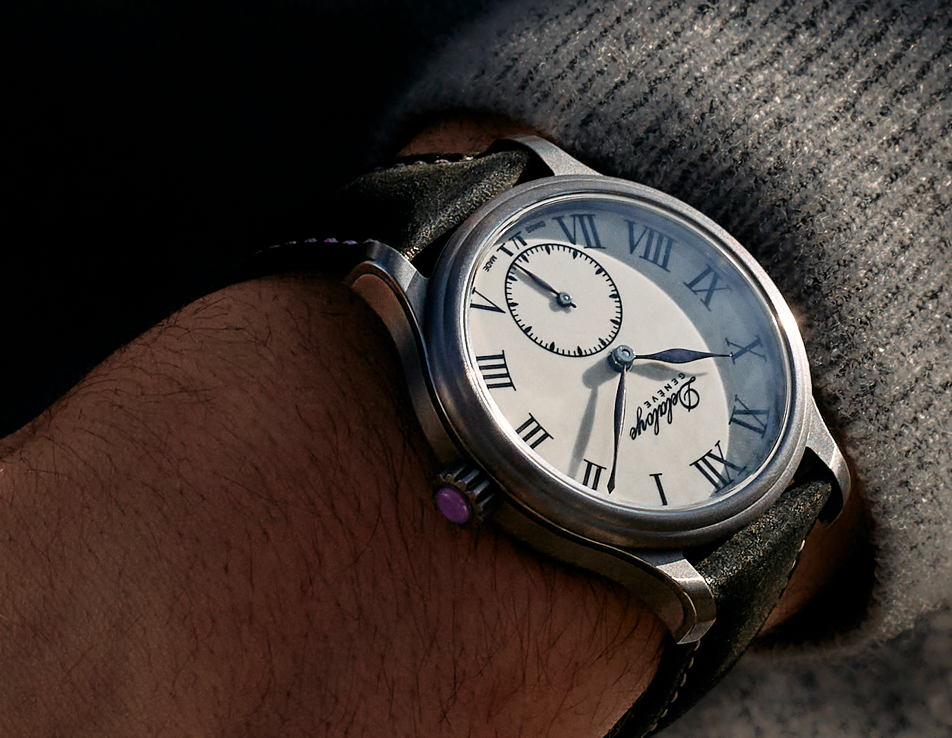Nos créations reflètent une approche personnelle de l’horlogerie : des formes maîtrisées, des détails précis et un travail entièrement réalisé à la main dans notre atelier à Genève. Chaque pièce témoigne d’un chemin, d’une intention et d’un regard porté sur le temps.